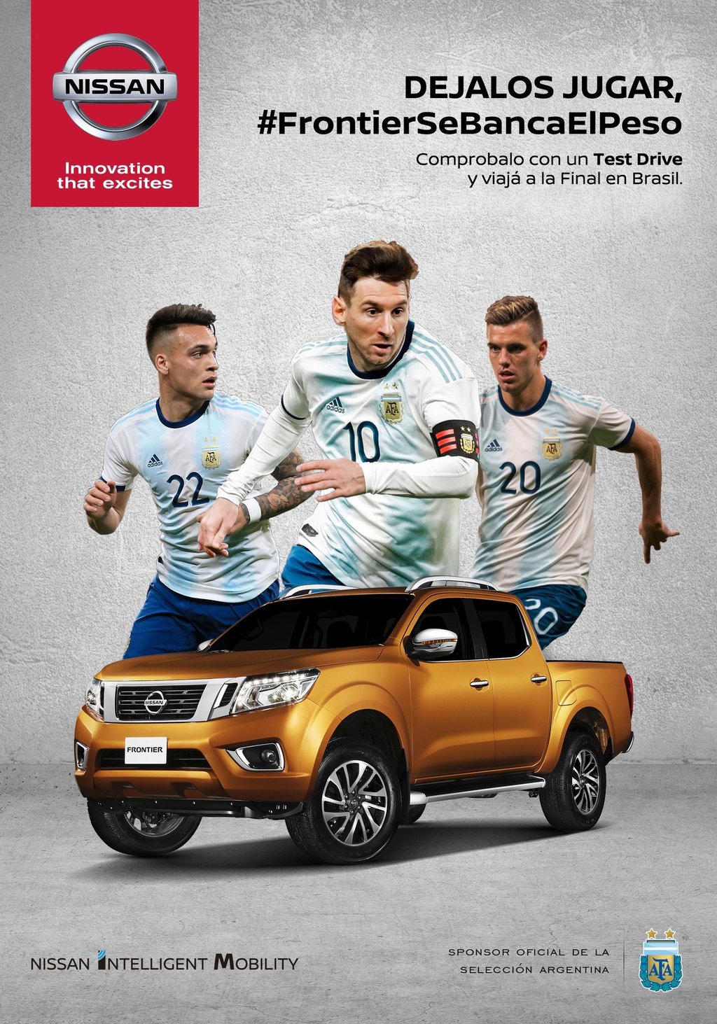 Nissan, the official sponsor of the Argentina National Football Team, is once again igniting the excitement of sports and launching a promotion to win a trip to the Final of the 2019 Copa América. Through an agreement signed in 2018, Nissan became part of Argentinians' passions as the official sponsor of the National Football Team, supporting both the senior team and the youth teams during all their challenges. In this way, Nissan once again shows that sports are in its DNA, as the brand supports various disciplines both locally and globally, such as the Buenos Aires Marathons, with the Nissan Kicks as the official vehicle; La Dolfina Polo Team, with the brand presence on the team's jersey and an exclusive fleet of cars; and the most significant European football league, the UEFA Champions League. "We are proud to support the National Team, a sport that generates so much enthusiasm among Argentinians," said Luis Alberto Perez Ettedgui, Marketing Director of Nissan Argentina. Once again, Nissan brings excitement to football by taking Argentine fans on this incredible experience.